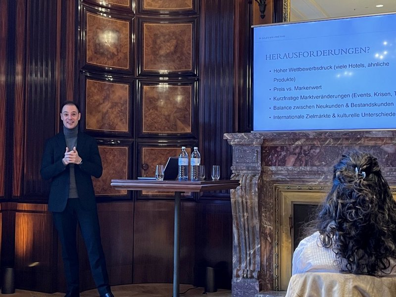 Fachlich wurde der Besuch durch spannenden Input ergänzt: Katharina Reisenhofer gab praxisnahe Einblicke in das Revenue Management, während Sascha Vaupel die Chancen im Sales & Marketing Management darlegte. Damit wurde deutlich, dass sich nach dem Abschluss des Kollegs zahlreiche Karrierewege eröffnen – weit über die klassischen Bereiche Front Office und Food & Beverage hinaus.