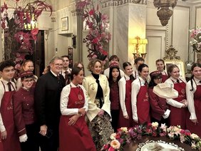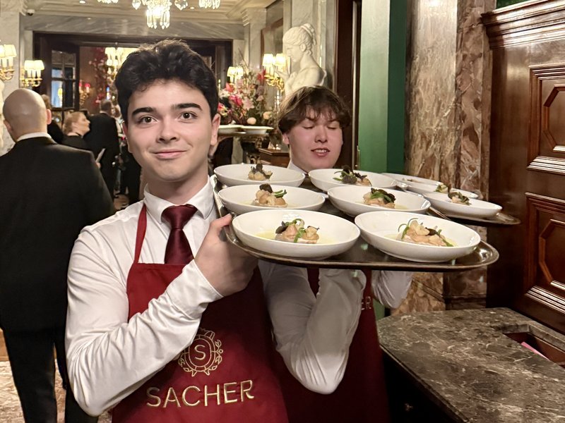 Im Hotel Sacher ging es für unsere Modulis direkt in die Königsklasse des Service: ein 5-Gänge-Galadinner für rund 520 Gäste – serviert in Rekordzeit. Präzision, Ruhe und perfekte Abläufe waren gefragt. Und genau hier zeigten unsere Schüler:innen, was sie können: professionell arbeiten, unter Druck den Überblick behalten – und dabei echte Gastgeber:innen sein.
