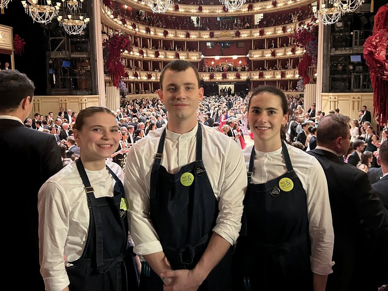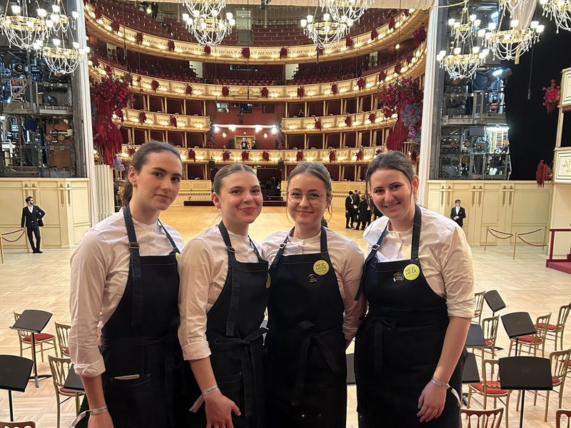 Auch in der Oper selbst waren unsere Modulis im Einsatz: Zehn Schüler:innen unterstützten das Ströck-Team in der Feierabendlounge. Champagner, Wein und feine Speisen wurden mitten im Ballgeschehen serviert – bis in die frühen Morgenstunden.