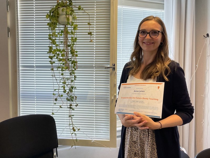 Noch weiter in den Norden zog es Anna Lanen: Sie nahm in der finnischen Hauptstadt Helsinki an der Fortbildung „AI and the 6Cs for Future-Ready Teaching“ teil. Insgesamt 25 Lehrer:innen aus ganz Europa – unter anderem aus Italien, Bulgarien, Rumänien, Frankreich, Deutschland, Spanien, Zypern, Polen, Kroatien, Ungarn, Island und Österreich – setzten sich intensiv mit den Chancen von Künstlicher Intelligenz im Unterricht auseinander.