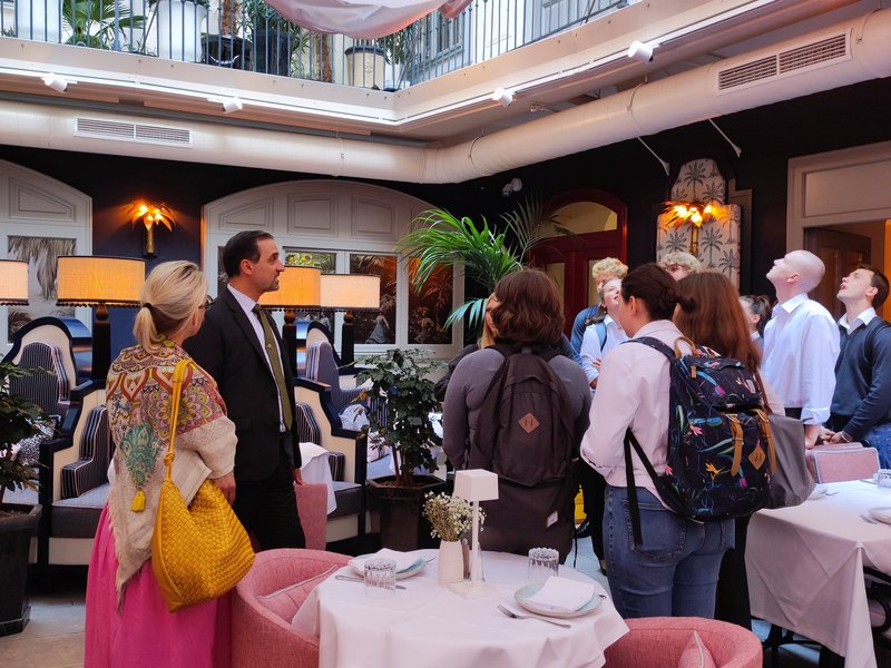 Im Hotel SCHANI Uno City hieß uns MODUL-Absolvent und General Manager Alexander Lang willkommen. Schnell wurde klar: Hier wird Nachhaltigkeit nicht nur großgeschrieben, sondern clever gelebt – von smarter Technik über effiziente Energienutzung bis hin zu ressourcenschonendem Design. Doch das ist noch längst nicht alles: SCHANI wäre nicht SCHANI, wenn es nicht auch ein charmantes Augenzwinkern gäbe. Das Thema Spionage zieht sich durch das ganze Haus und begegnet den Gästen in detailverliebten Inszenierungen. Wer also im Frühstücksraum plötzlich Lust verspürt, streng geheime Dossiers durchzublättern, hat sich vermutlich einfach vom Storytelling inspirieren lassen.